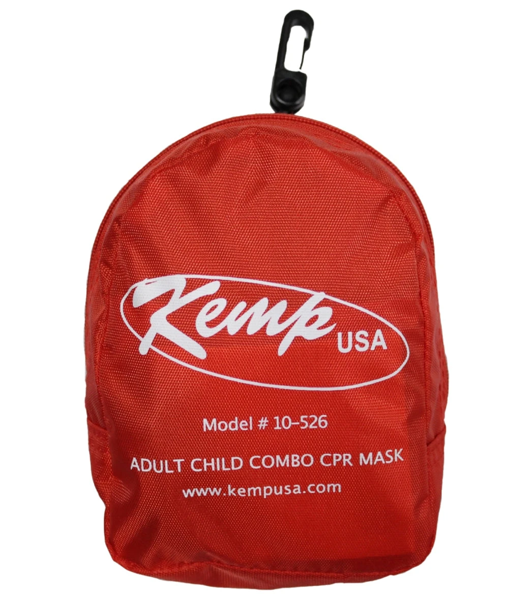 The Kemp USA CPR Mask is packaged in a compact, hard shell, pocket-sized carrying case, and features a one-way valve with filter. It has a contoured soft vinyl cuff that shapes easily to adult, child, and infant facial contours, preventing mouth-to-mouth contact with the victim. Its transparent dome allows the rescuer to check the victim’s mouth for lip color and secretions. The mask is ready to use with no need to assemble the valve and filter.