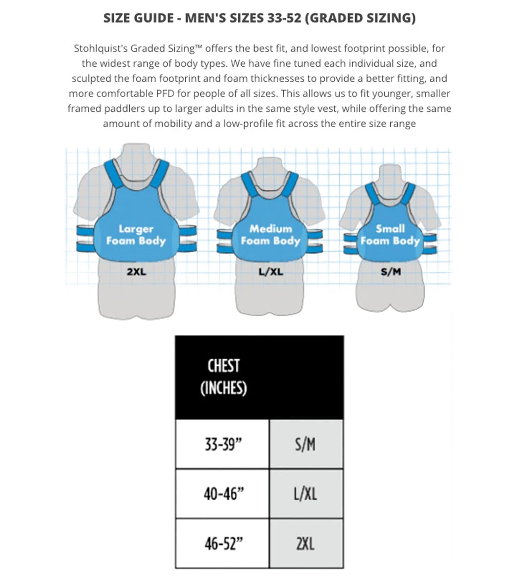 One of Stohlquist’s most popular PFD’s, the EBB, is now offered in their Graded Sizing for the ultimate fit. The higher mesh back flotation fits more comfortably above the tall seat backs found in today’s recreational and touring kayaks.